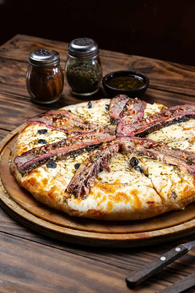 Muzza, Brisket, chimichurri y orégano.